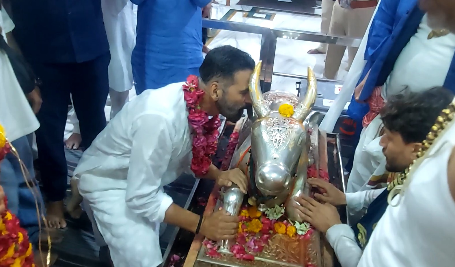 Akshay Kumar Mahakaleshwar Temple Visit Highlights Jal Abhishek Ritual as Actor Prays in White Kurta-Pyjama