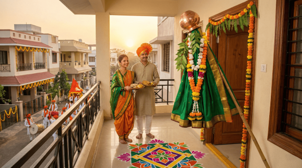 The festival is considered highly auspicious and sacred among Hindu communities. On Gudi Padwa 2026, families clean and decorate their homes and install a Gudi, a decorated flag-like structure, outside their houses or on rooftops.
