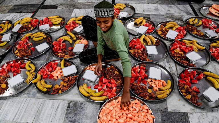 Before the Fajr call to prayer in the morning, Muslims eat Sehri and begin their fast for the day. During the fasting hours, people abstain from food and drink while following religious guidelines and focusing on prayer and reflection.