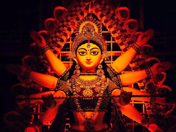 Tantric practitioners and devotees often perform rituals at midnight, adorning the Goddess with a red chunari and offering red flowers. The lamp is lit with mustard oil, and prayers are offered while chanting “Om Dum Durgaye Namah”.