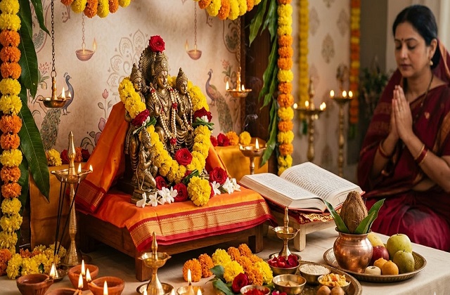 - Offer bhog and perform aarti to conclude the worship.