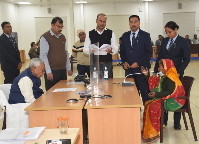 December 18, 2023 : Bihar Chief Minister Nitish Kumar once again took part in his popular public grievance redressal program, “Janta Ke Darbar Mein Mukhyamantri,” where he listened to the concerns of citizens from across the state. The event, which takes place regularly, serves as a direct channel between the people of Bihar and the state government, providing an opportunity for citizens to voice their problems and receive quick resolutions.