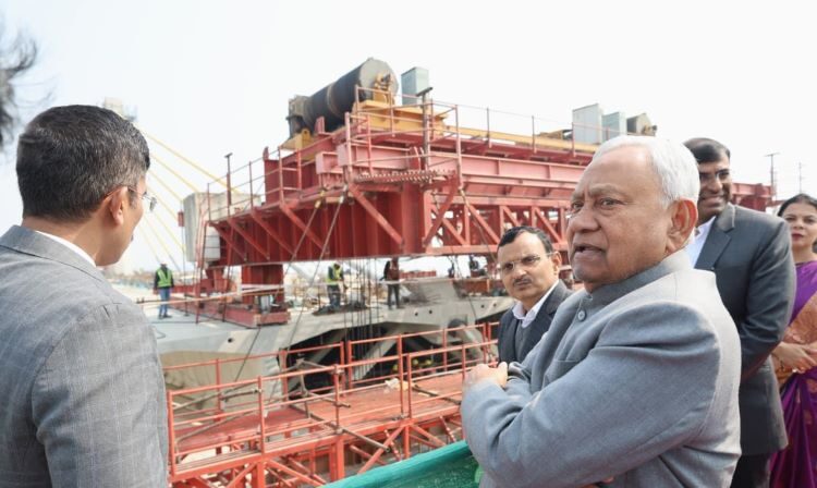 Patna : Chief Minister of Bihar Nitish Kumar inspected the ongoing construction of the Kacchi Dargah-Bidupur 6-lane Ganga Bridge project, emphasizing the need for speedy completion. During his visit, the CM directed officials to ensure that all remaining works are executed at a faster pace to benefit the people of the region as early as possible.