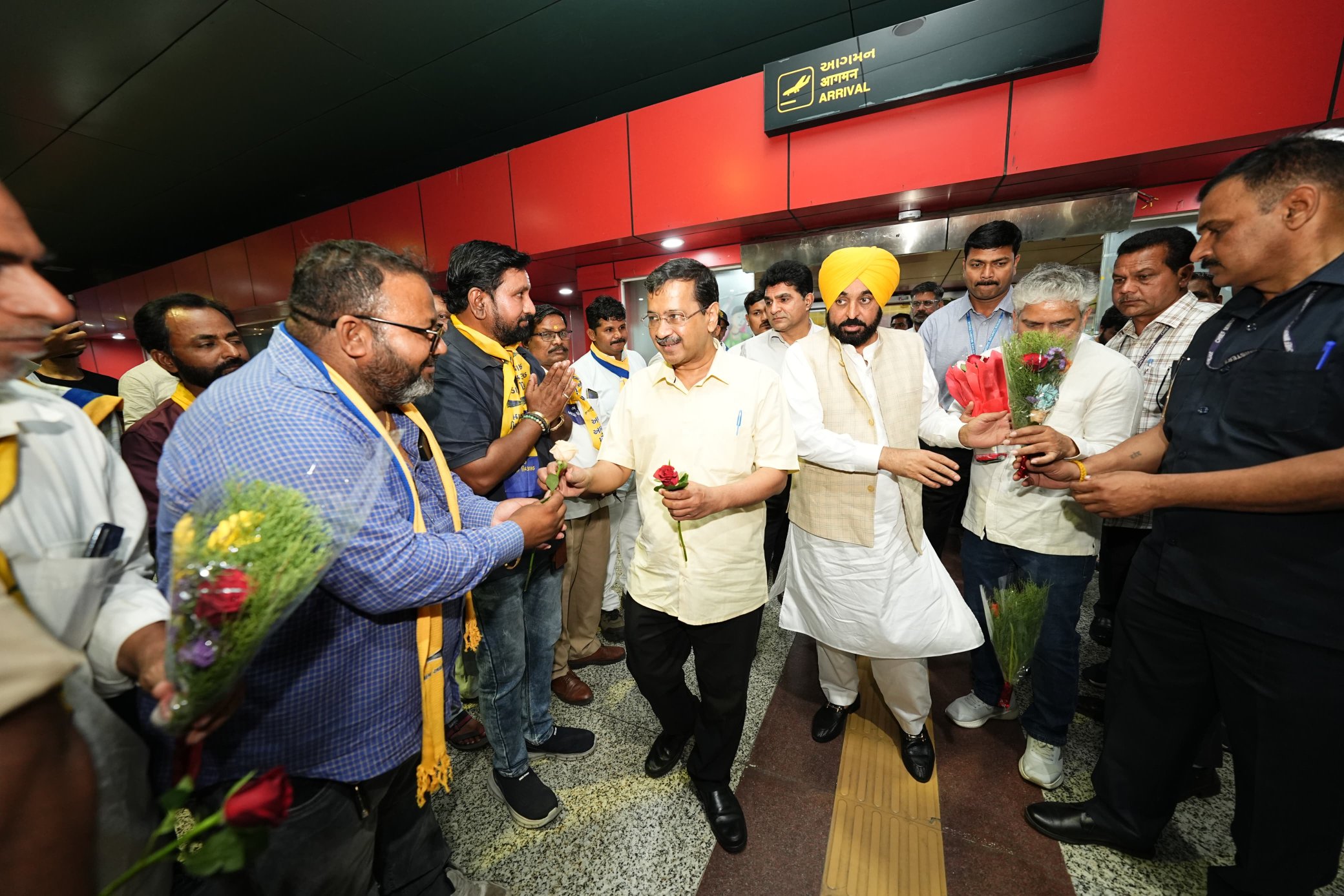Vadodara, Gujarat: In a significant political event, AAP Gujarat received a major boost as Aam Aadmi Party (AAP) National Convenor Arvind Kejriwal and Punjab Chief Minister Bhagwant Mann were warmly welcomed by party leaders and workers in Vadodara on Thursday.