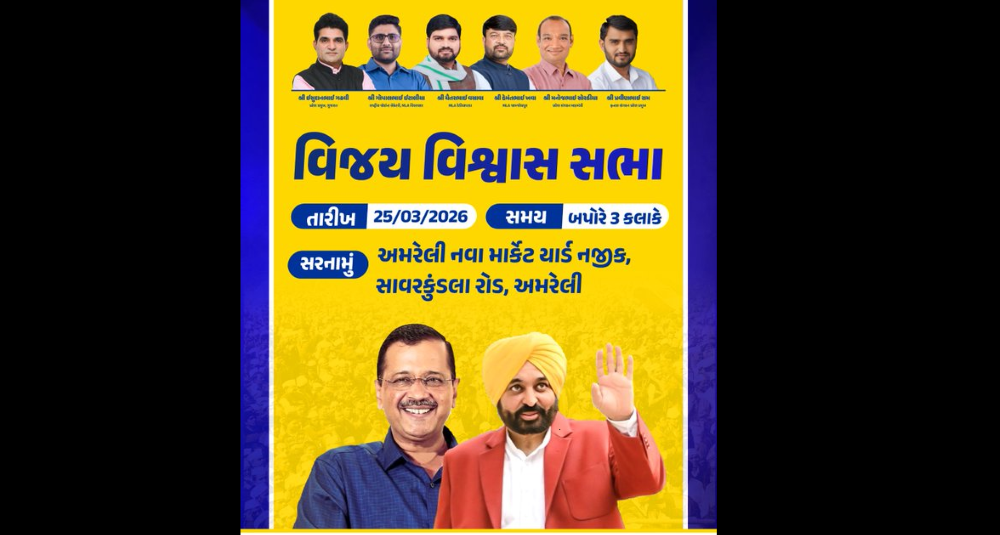 Scheduled to begin at 3:30 PM, the AAP Gujarat Vijay Vishwas Sabha will take place near the New Market Yard on Savarkundla Road, Amreli. The event promises to be a platform for party leaders to connect directly with citizens, share their vision, and discuss key public issues affecting the region.