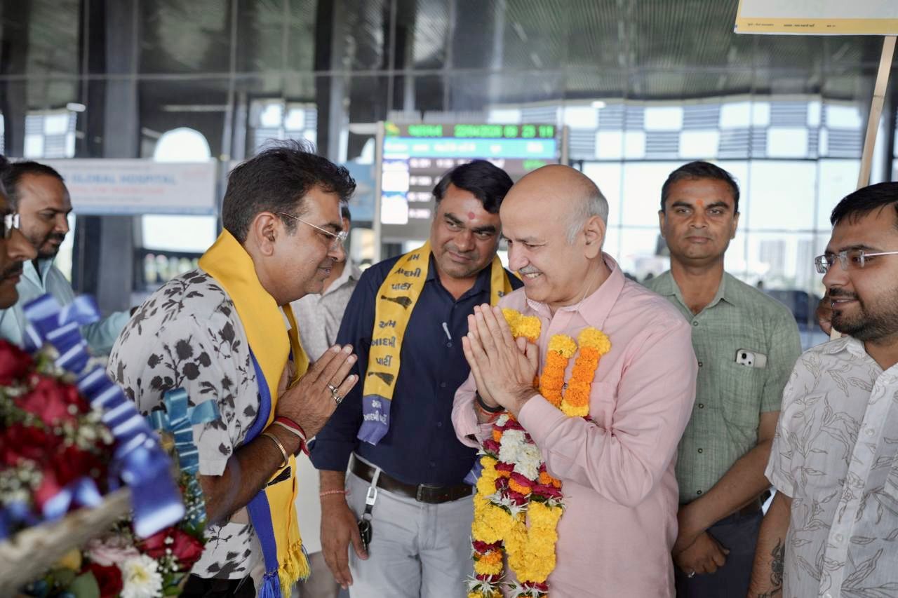 Sisodia landed at Surat Airport, where he was welcomed by several party leaders and workers. Among those present were South Zone in-charge Rambhai Dhaduk, Surat city president Dharmesh Bhanderi, and Lok Sabha in-charge Rajnibhai Waghani, along with a large number of AAP supporters.