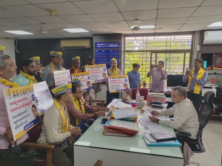 Surat: Concerns over bogus private schools in Gujarat have prompted parents to take action, with support from AAP Gujarat leaders. A representation was submitted at the Surat District Education Officerâs office under the leadership of AAP Gujarat Pradesh General Secretary Rakesh Hirpara and Surat City President Dharmeshbhai Bhanderi.