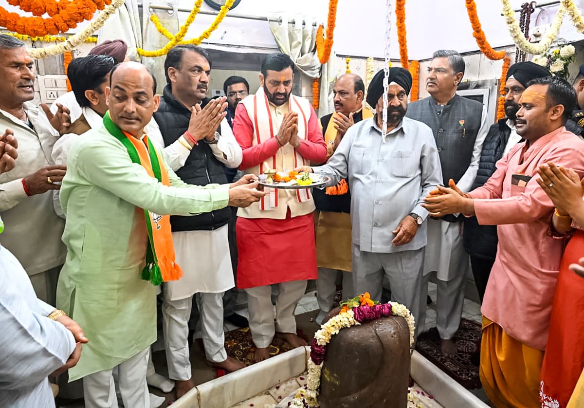Nuh: Marking the auspicious occasion of Mahashivratri, Haryana Chief Minister Nayab Saini visited the revered Nalhar Mahadev Temple in Nuh district, where he offered prayers to Lord Shiva and performed the traditional ritual of Jalabhishek.
