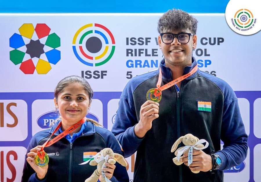 Haryana: Palak Gulia Mukesh Nelavelli ISSF World Cup performance has made the nation proud as the Haryana pair clinched the gold medal in the 10m Air Pistol Mixed Team event at the ISSF World Cup in Granada. Their remarkable victory also established a new junior world record, highlighting the growing prominence of India’s young shooters on the global stage.