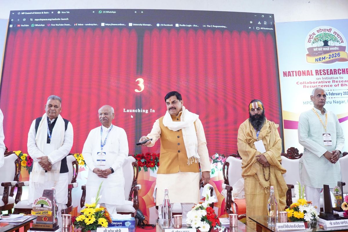 Dr. Mohan Yadav also inaugurated the “Mahakal: The Master of Time” website, released the poster for the 41st Madhya Pradesh Yuva Vaigyanik Sammelan Evam Vigyan Utsav organized by Mapcost, and unveiled seven research-oriented books published by Dattopant Thengadi Shodh Sansthan. The event attracted researchers, academicians, and experts from across the country, with discussions scheduled on multiple aspects of science, innovation, and research until February 14.