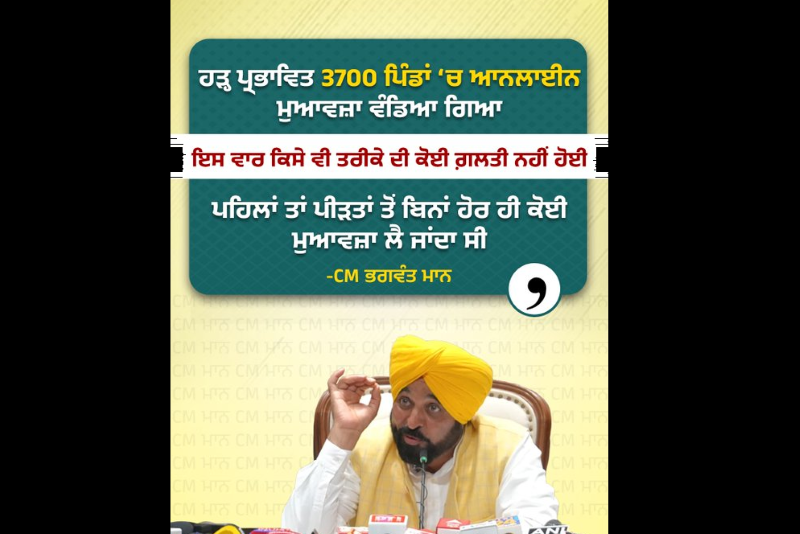 Chandigarh : In a major step towards helping flood-affected communities, the Punjab government has successfully distributed online compensation to residents of 3700 villages impacted by recent floods. Chief Minister Bhagwant Mann confirmed that this time, the process was completely transparent, leaving no room for any irregularities.