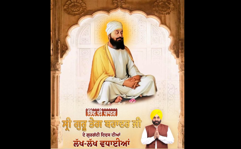Bhagwant Mann’s greetings highlighted the significance of the Gurgaddi Day of Sri Guru Teg Bahadur Ji, noting that remembering such historical figures strengthens moral values and the spirit of selfless service among citizens. He encouraged everyone to reflect on Guru Ji’s contributions and continue to uphold justice and equality.