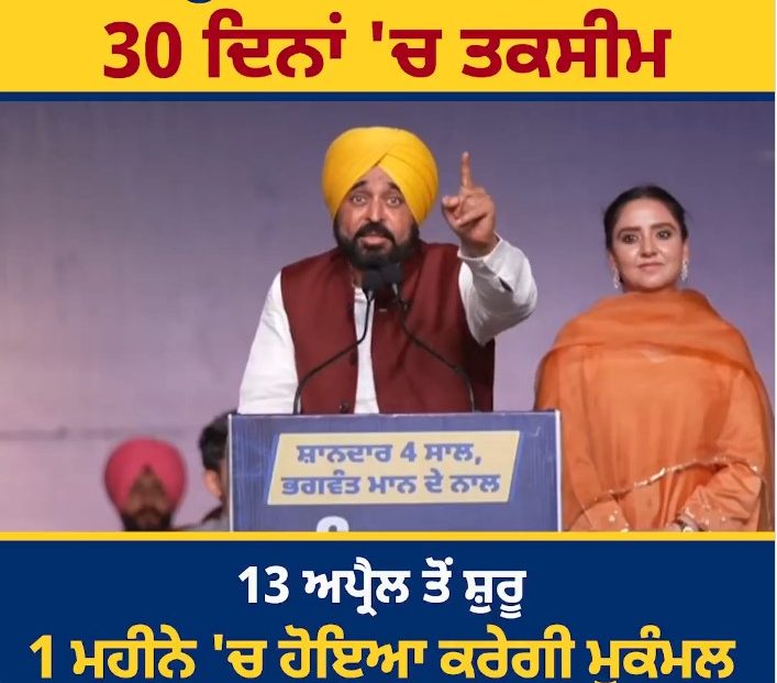 13 ਅਪ੍ਰੈਲ ਤੋਂ ਸ਼ੁਰੂ ਹੋ ਜਾਵੇਗੀ ਤਕਸੀਮ ਦੀ ਪ੍ਰਕਿਰਿਆ, ਸਹਿਮਤੀ ਨਾਲ਼ ਕਰਵਾਉਣ ਵਾਲ਼ੇ ਭੈਣਾਂ-ਭਰਾਵਾਂ ਨੂੰ 1 ਮਹੀਨੇ ਚ ਮੁਕੰਮਲ ਹੋਇਆ ਮਿਲੇਗਾ ਸਾਰਾ ਕੰਮ, CM ਮਾਨ ਨੇ ਸਭ ਨੂੰ ਦਿੱਤਾ ਦਿੱਤਾ ਝਗੜੇ ਛੱਡ ਸਹਿਮਤੀ ਨਾਲ਼ ਵੰਡ ਮੁਕਾਉਣ ਦਾ ਸੱਦਾ pic.twitter.com/SXf2rgriah