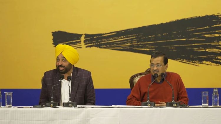 AAP sweeps Punjab elections; Kejriwal credits Bhagwant Mann leadership during press conference, highlighting healthcare, jobs, and anti-drug initiatives.