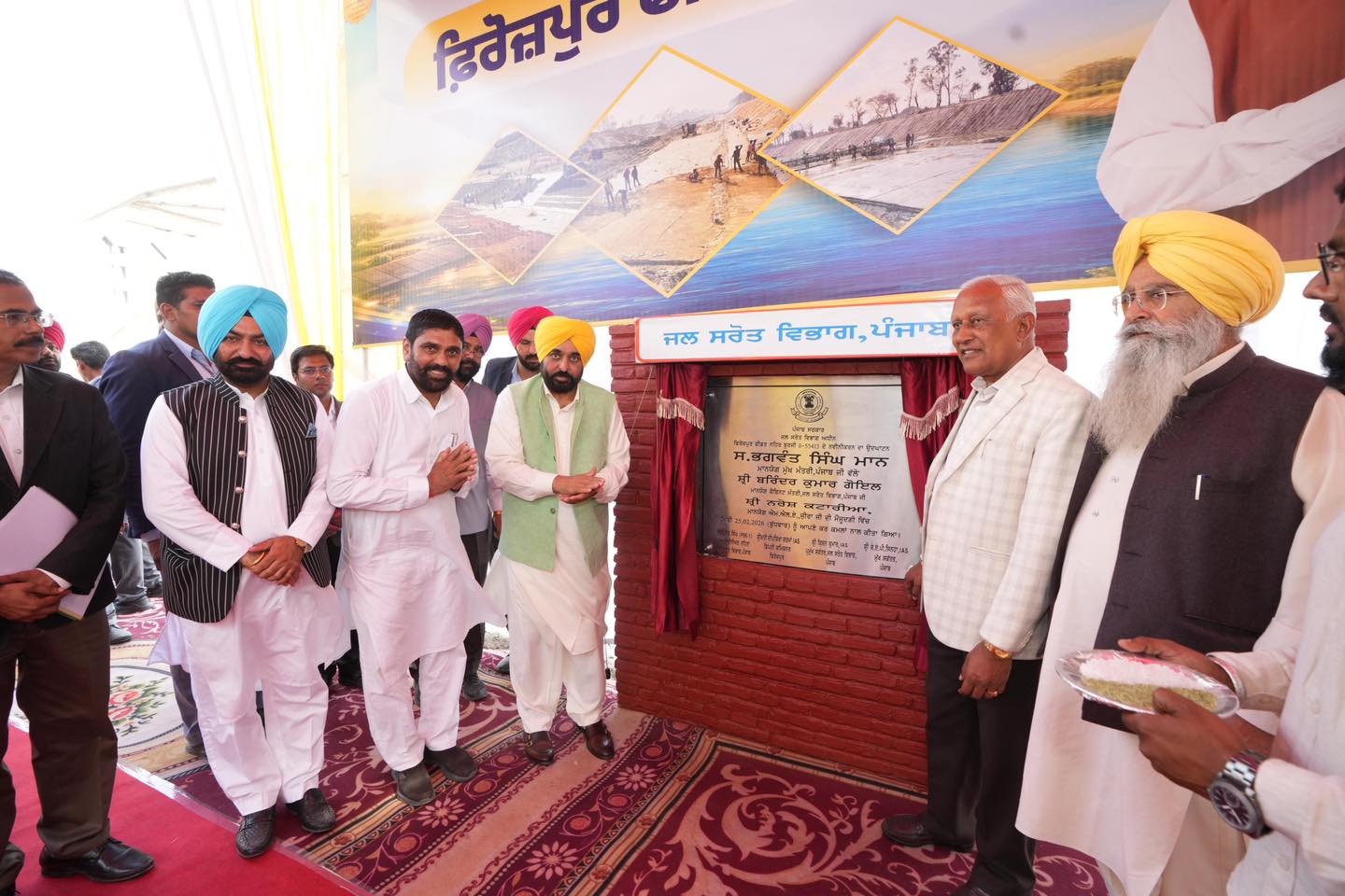 MAKHU – Punjab Chief Minister Bhagwant Singh Mann inaugurated the first phase of the Ferozepur Feeder Canal relining project on Wednesday, describing it as a landmark gift to farmers and a decisive step toward securing Punjab’s water future. The project, costing ₹180 crore, is expected to enhance irrigation capacity across Ferozepur, Faridkot, Sri Muktsar Sahib, and Fazilka districts.