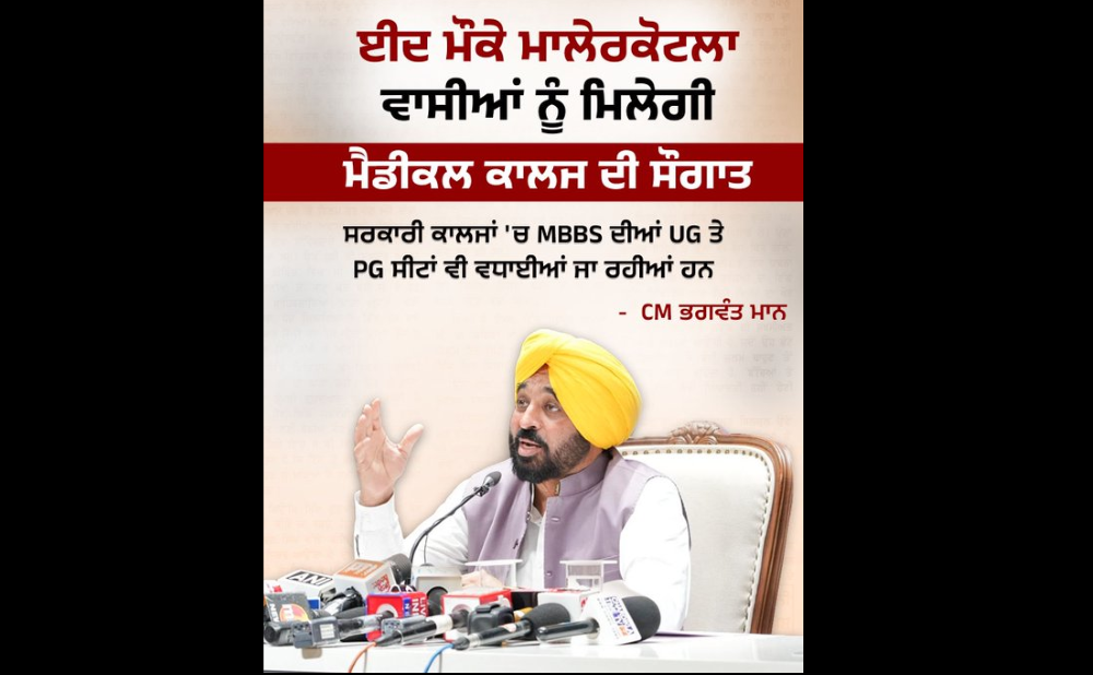 In a major boost to healthcare and education, the Mann government has announced that residents of Malerkotla will receive the Malerkotla medical college as a gift this Eid. Chief Minister Bhagwant Mann shared that the initiative will enhance medical education opportunities and improve healthcare facilities in the region.