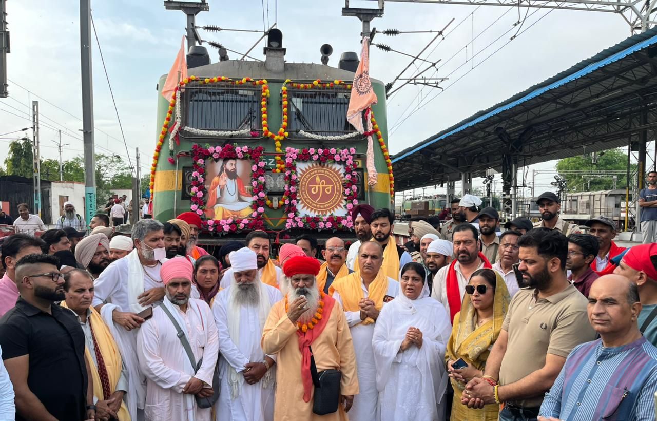 Jalandhar : Punjab Horticulture, Freedom Fighters and Defence Services Welfare Minister Mohinder Bhagat and Advisor to the Tourism and Cultural Affairs Department Deepak Bali today flagged off the Damri Yatra for Haridwar by a special train from the local City Railway Station under the guidance of Sant Nirmal Dass Ji Jode Wale, Sant Pragat Nath and other saints and spiritual leaders. On this occasion, Chabbewal MLA Dr. Ishank Kumar and Chairman District Planning Committee Amritpal Singh were also present.
