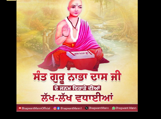 Bhagwant Mann wrote, “Heartfelt congratulations to all the sangat on the Shri Sant Guru Nabh Das Ji birth anniversary. Let us walk on the path of his teachings and work for the welfare of society.” The Chief Minister emphasized the importance of living a life inspired by Guru Nabh Das Ji’s values of compassion, service, and humility.