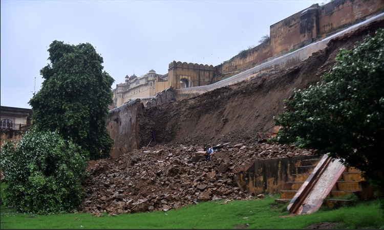 JAIPUR : The relentless monsoon rains in Jaipur caused part of the historic Amer Fort wall to collapse on Saturday, sparking panic among hundreds of tourists.